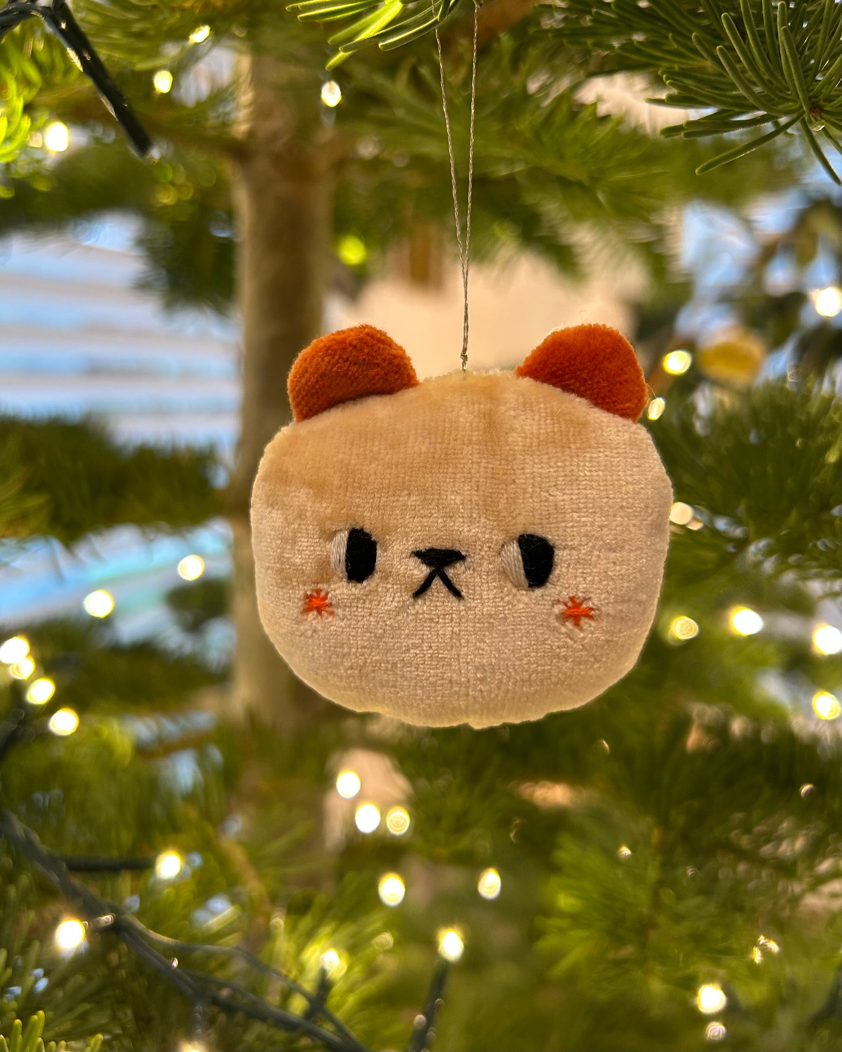This ornament is made of hand dyed velour fabric, velveteen ears, hand embroidered details and stuffed with poly fil.